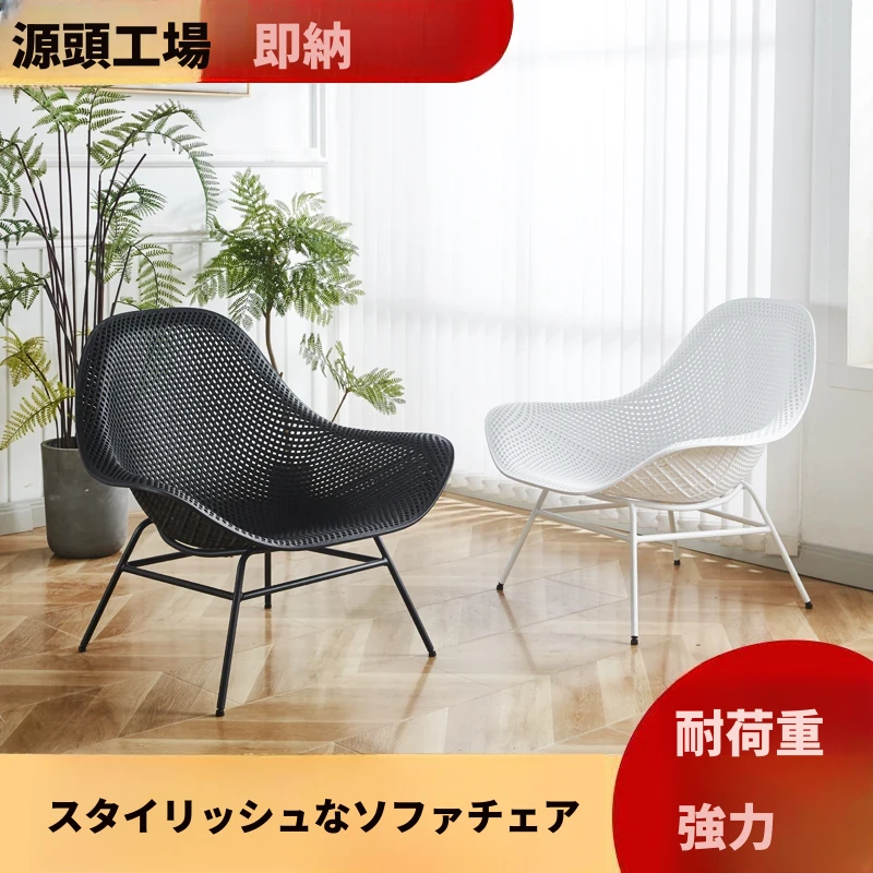 北欧風シンプルモダンなカフェ用リクライニングチェア - おしゃれな透かしデザイン、快適な座り心地で、リラックスできるひとときを提供します。シングルソファとしても最適、会話を楽しむのにぴったりな一脚です。