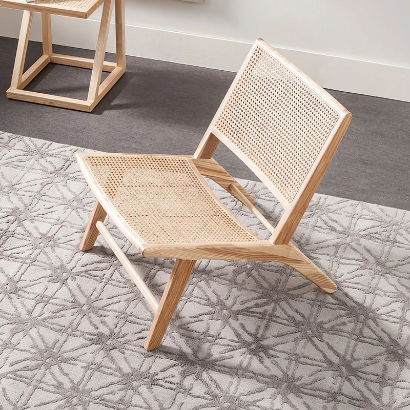 北欧デザインの無垢材とラタン編みのリクライニングチェア - モダンでシンプルな一人用バルコニー用リラックスチェア、室内読書にも最適なソファチェア!