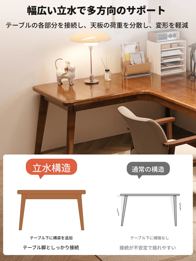 天然木製 L字型コーナーデスク - 家庭用・寝室に最適なコンピューターデスク!ベッドサイドや窓際にもぴったりな広々とした大板デザイン。快適な作業スペースを実現します!