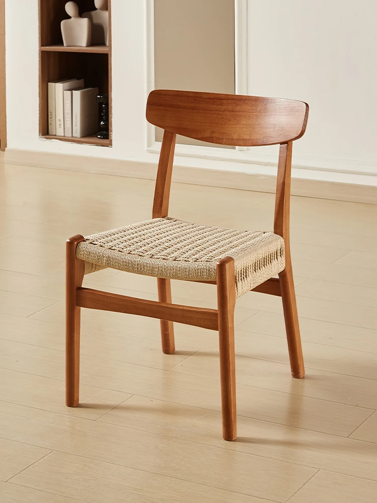 北欧風の無垢材中古ダイニングチェア|家庭用レストラン・書斎・カフェに最適|リラックスできるフレンチスタイルのロープ編み椅子