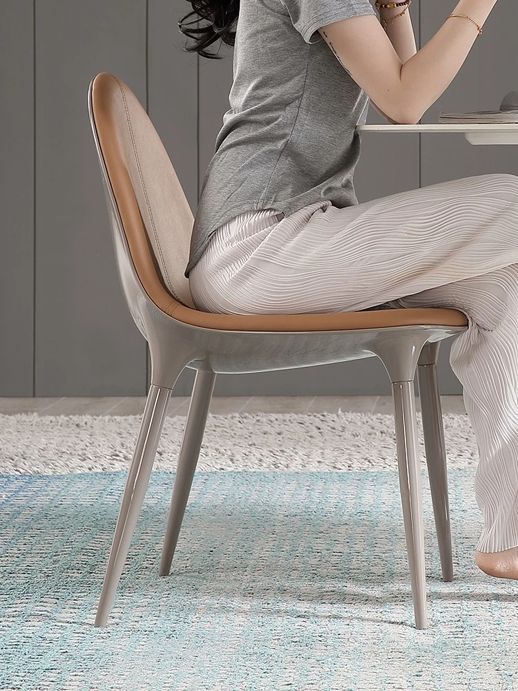 高級感溢れるイタリアンミニマルデザインのソフトレザー食卓椅子 - おしゃれなダイニングにぴったりの軽奢感あふれるモダンスタイル!