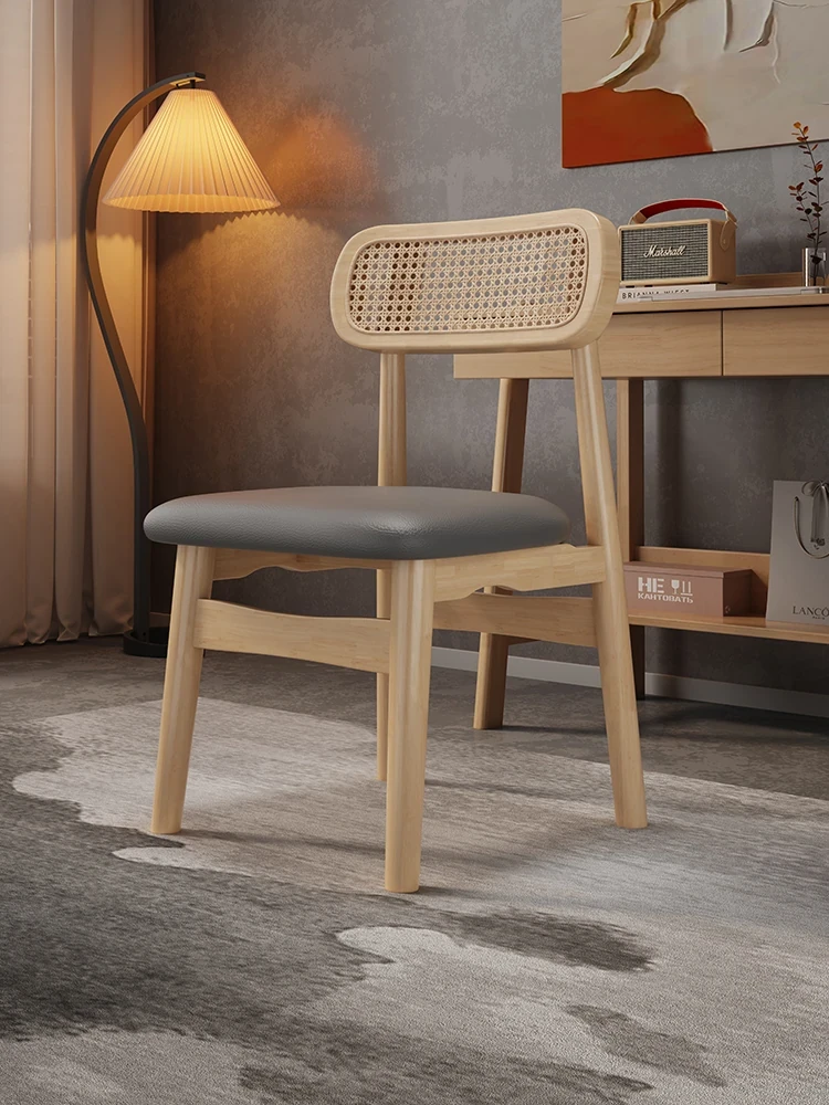 北欧スタイルの天然木製ダイニングチェア|現代的でシンプルなデザイン|本革ソフトパッド|化粧台やネイルサロンにも最適|背もたれ付き、美しい布張り|快適さとスタイルを兼ね備えた一品!