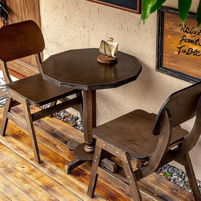 中式レトロデザインの無垢材テーブルとリラックスチェア - 小型住宅に最適!リビングやバルコニー、ダイニングにぴったりの円形・角形テーブル。心地良い時間をお楽しみください。