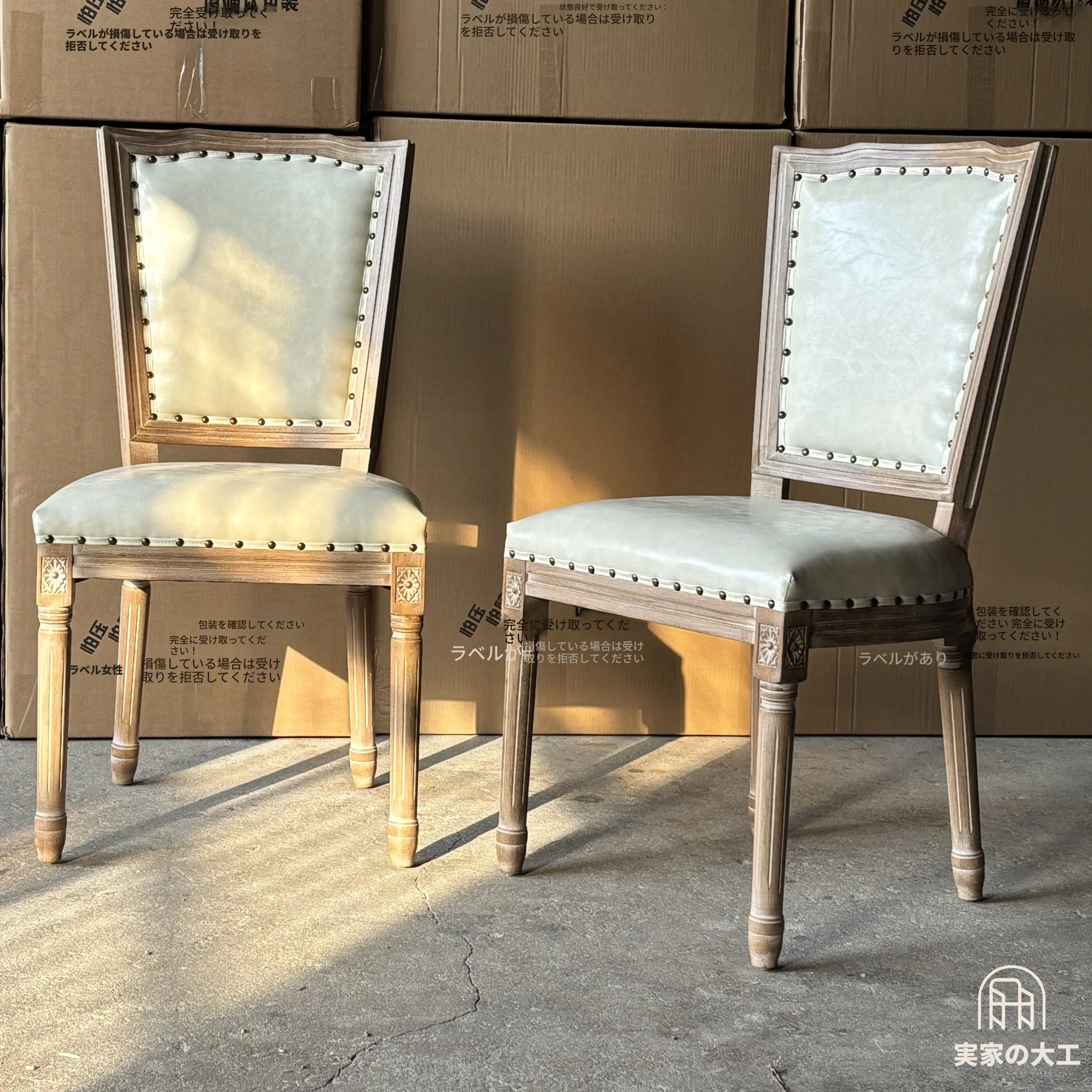 中古の無垢材ダイニングチェア|家庭用・民宿向け|クリーム風テイストのホワイトアッシュ材|フレンチヴィンテージの花柄デザイン|快適な背もたれ付きで、心地よい食卓を演出します!