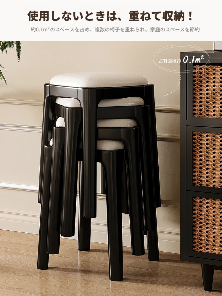 スタイリッシュな無垢材スツール|重ねて収納可能な家庭用ダイニングチェア|ヴィンテージ風のソフトパッドメイクアップスツール|軽やかな高級感を演出するダイニングテーブル用スツール