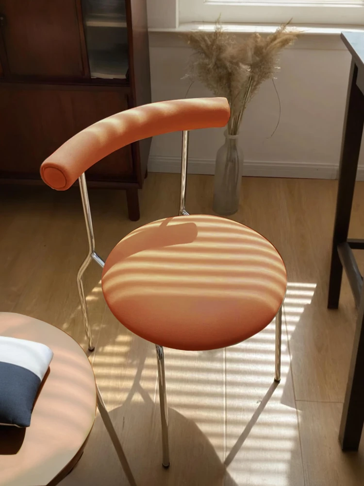 バウハウス風ステンレス製ダイニングチェア - イタリアンミニマリズムのサドルレザー仕上げ、島台に最適なハンドル付き軽奢主賓椅子。洗練されたデザインで、あなたの空間をよりスタイリッシュに演出します!