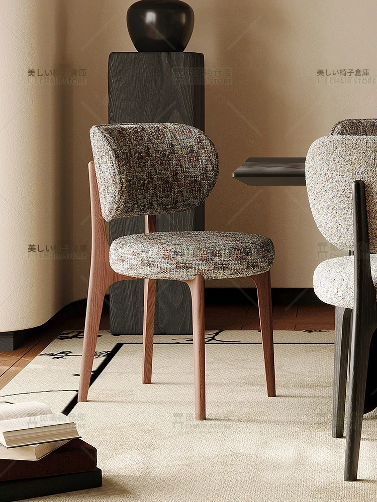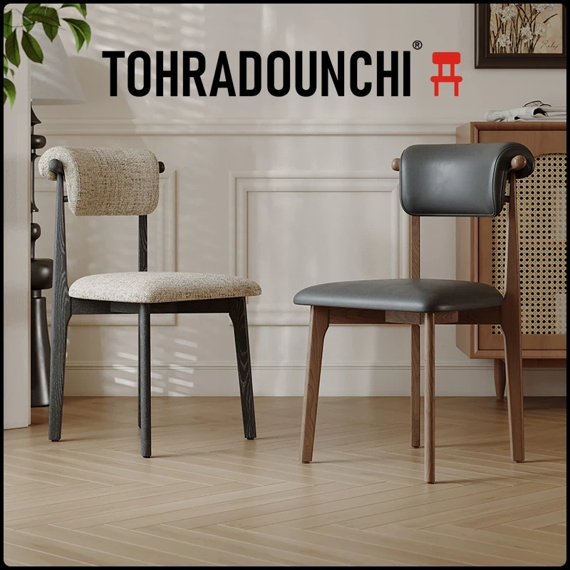 北欧風シンプルデザインの無垢材ダイニングチェア|モダンでラグジュアリーなレザー&ファブリック|ホテルやデザイナー向け、家庭用にも最適な長時間座っても疲れにくい背もたれ付きチェア