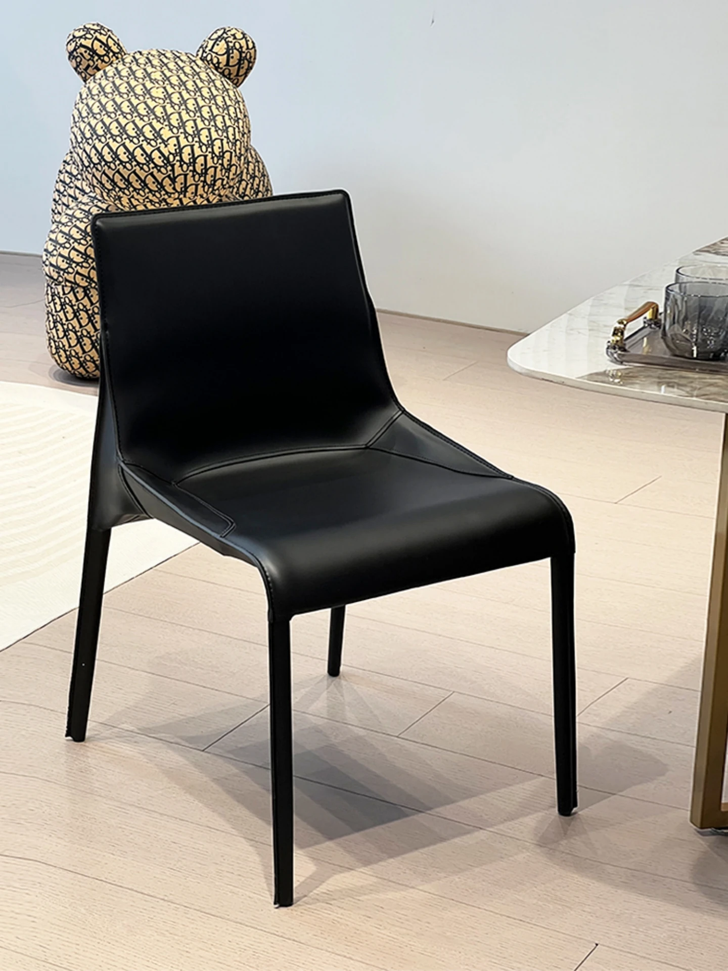 デザイナーズダイニングチェア|ミニマルなイタリアンラグジュアリー、上質な牛革使用|シンプルでモダンな家庭用レザー椅子|洗練されたデザインで、食卓を華やかに演出!