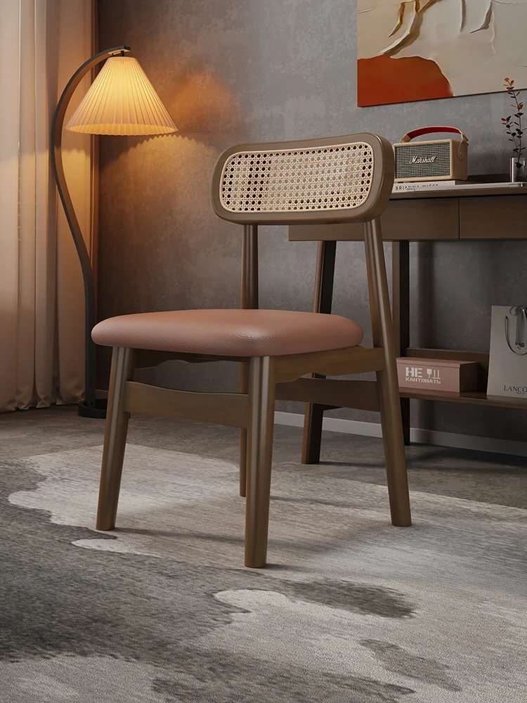 フランス風ラタン編み実木ダイニングチェア、背もたれ付き、アンティーク調のブラックウォールナット色、侘寂スタイルの書斎・ティーテーブル用ソファチェア。上質なデザインで、居心地の良い空間を演出します!