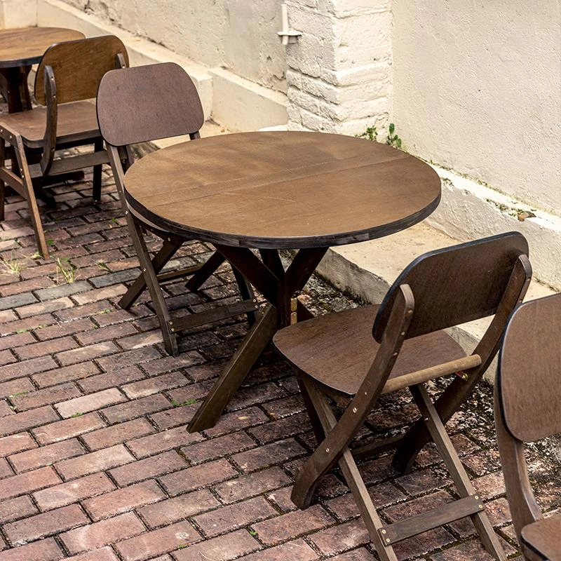 シンプルでレトロな無垢材折りたたみ円形テーブル - 楕円形デザイン、折りたたみ椅子付き!狭いスペースにもぴったりな家庭用ダイニングテーブル、カフェテーブル、食卓に最適です。