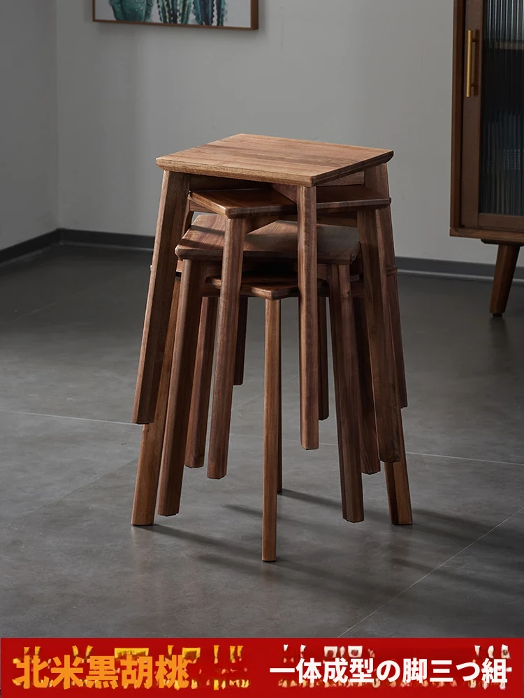 北米産ブラックウォールナットの無垢材スツール - 家庭用に最適なスタッキング可能な円形スツール、ダイニングチェアやローチェアとしても使える!おしゃれで機能的なデザインで、あなたの食卓を素敵に演出します。