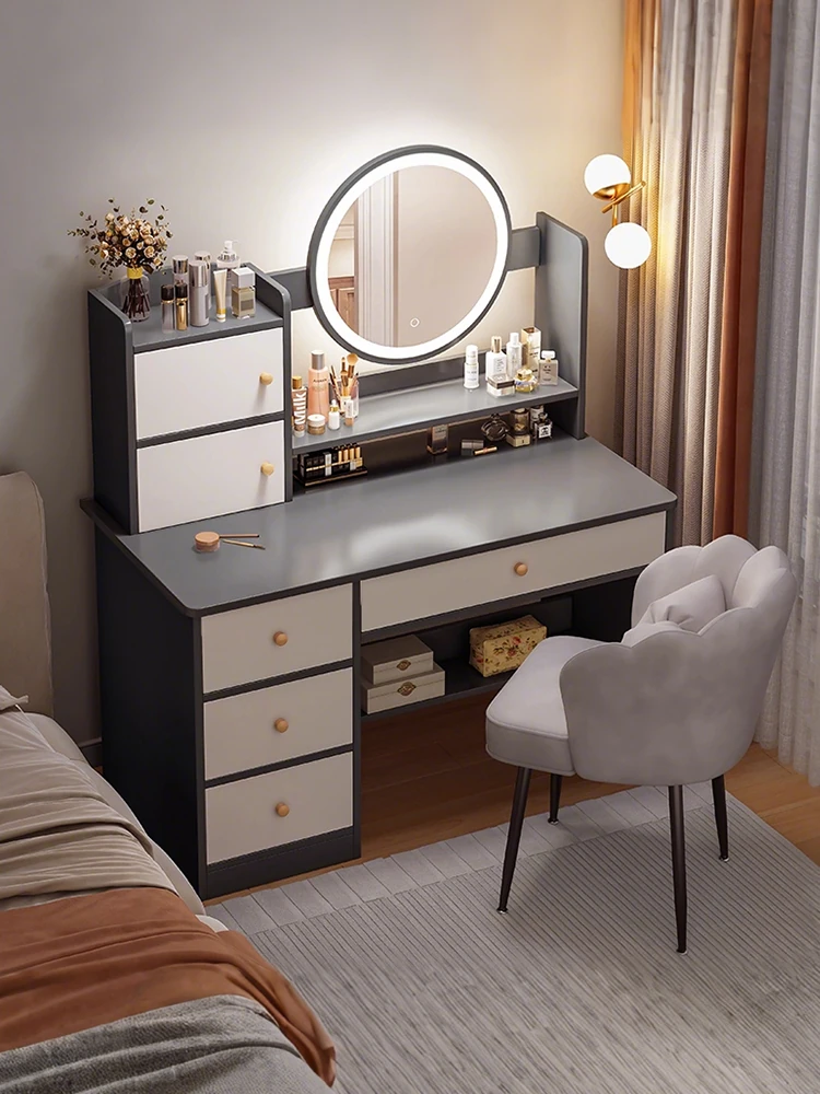 現代的なドレッシングテーブル - シンプルでスタイリッシュなデザイン、2025年新作!小さな部屋に最適な収納力抜群のメインベッドルーム用キャビネット一体型。美しい化粧空間を演出し、毎日のメイクアップを楽しく!