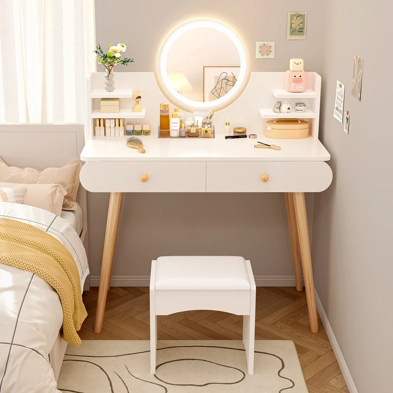 簡約モダンな小型ドレッサー!新作女性向けメイクアップテーブル、主寝室に最適なミラー付き化粧台。狭いスペースでもおしゃれ&機能的!あなたの美しさを引き立てるアイテムです。