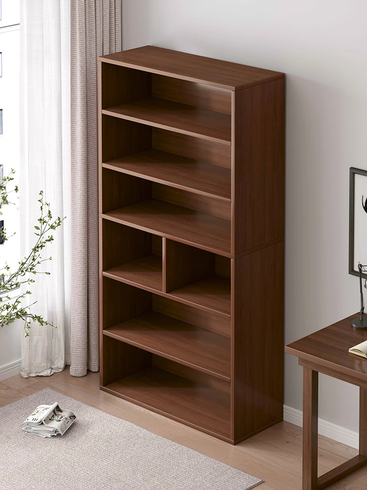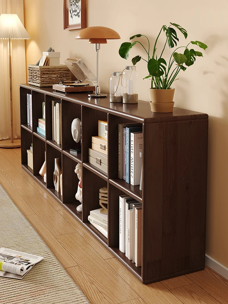 ウォールナットカラーの実木製ロー書棚 - リビングに最適な自由自在な組み合わせ収納キャビネット!おしゃれで機能的、スペースを有効活用!