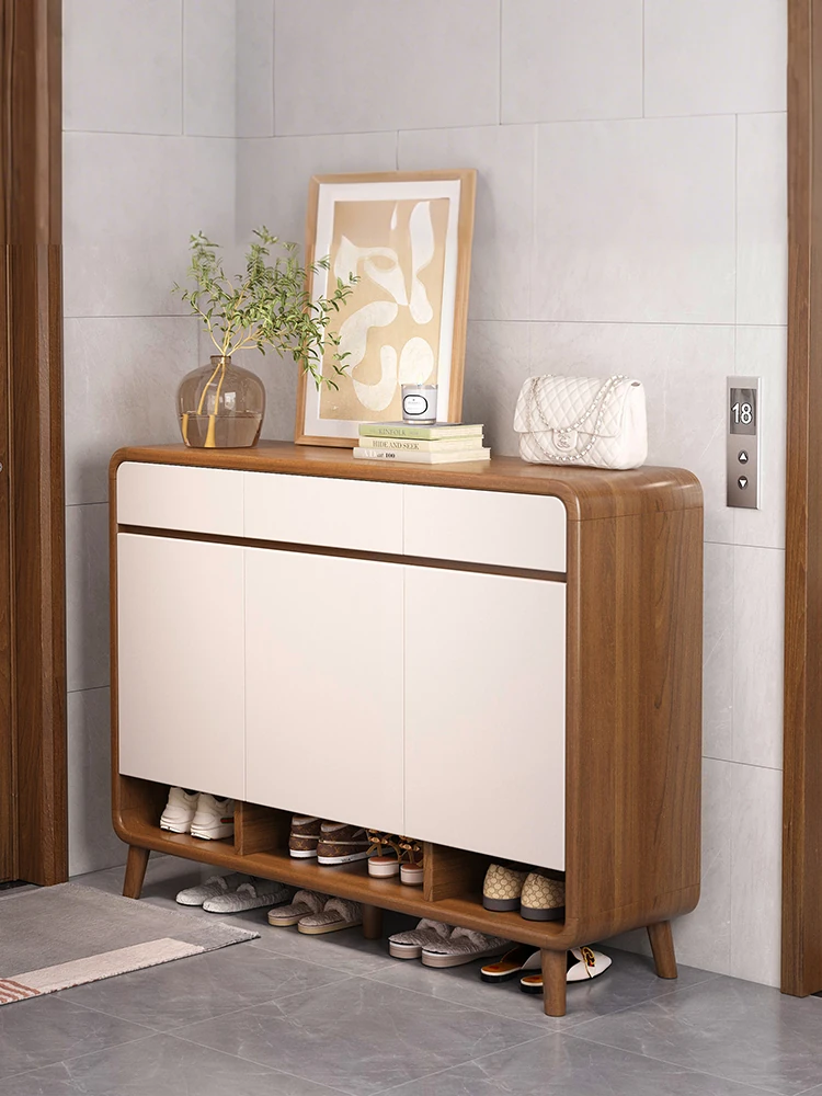 玄関用の高級天然木製シューズキャビネット - 2025年新作!壁に寄せられるデザインで、家の入り口をおしゃれに演出。収納力抜群で、靴をスッキリ整理!