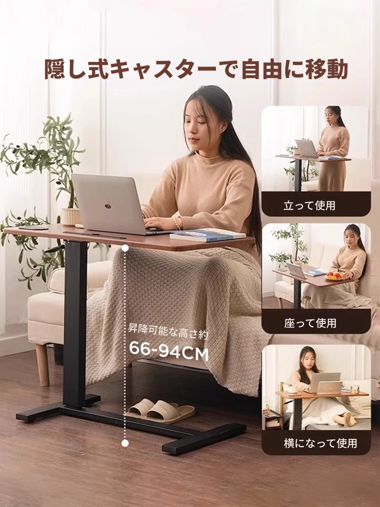移動式ベッドサイド収納ラック&昇降式パソコンデスク!おしゃれな実木製、学生の勉強や家庭用にぴったりの折りたたみ式ベッドサイドテーブル。快適な作業空間を手に入れよう!