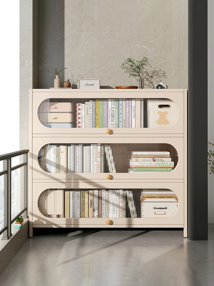 バルコニー用クリーム風書棚 防塵扉付き書庫 一体型壁面収納ラック フロアスタンド スチール製収納キャビネット - スタイリッシュで実用的、スペースを有効活用!