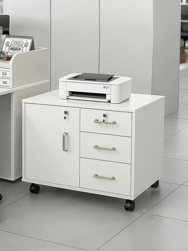 鍵付き引き出し付きのオフィスデスクサイド収納棚 - プリンター置き場とデスク下収納が可能!整理整頓が簡単で、仕事効率をアップ!あなたのオフィスに最適なアイテムです。
