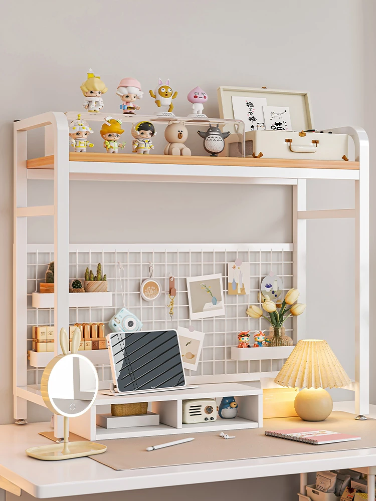 デスク上のアイアン製多層収納ラック - スタイリッシュな学習デスク用ホールボード、オフィスや寮に最適な装飾&整理整頓アイテム!