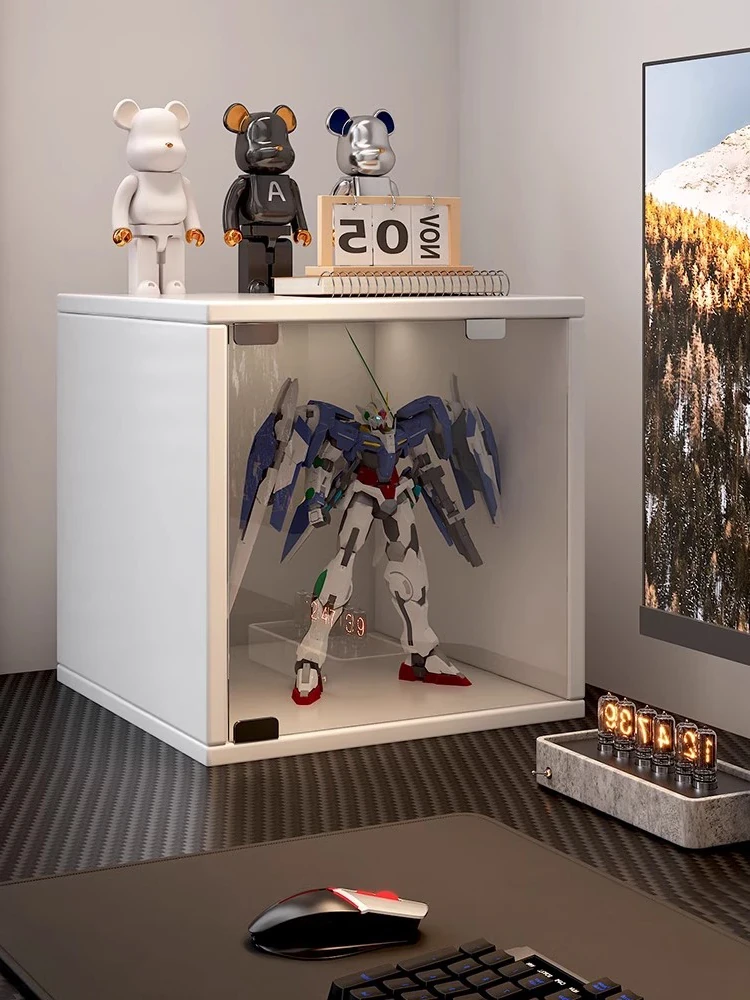デスクトップ収納ラック ゲーミングルーム展示キャビネット 引き戸付き収納ボックス 防塵・自由に組み合わせ可能な小型キャビネットで、あなたのゲーム環境をスタイリッシュに整理整頓!