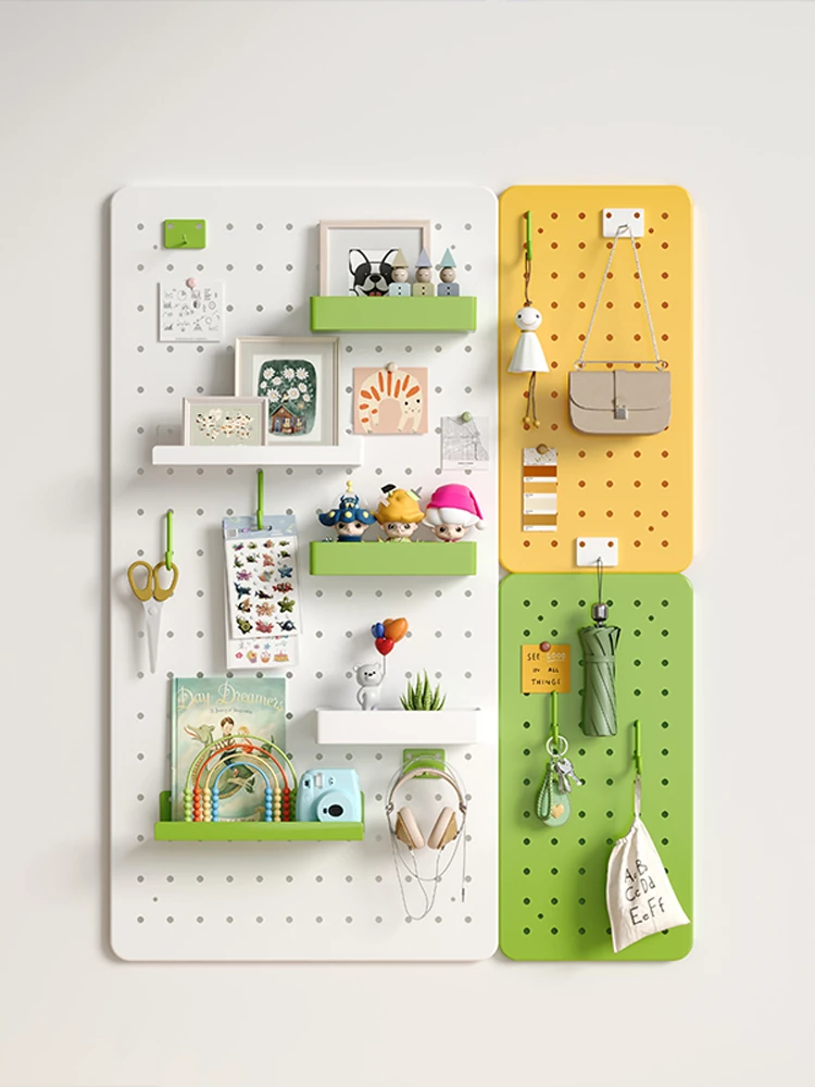 壁掛け穴あきボード収納棚 - 学生・家庭・寮に最適!書 desk の上をスッキリ整理できる金属製ディスプレイラックで、スタイリッシュな空間を実現。収納力抜群で、使いやすさも抜群!