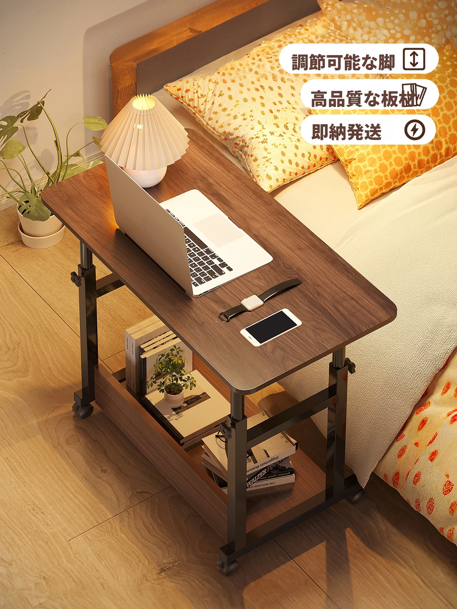 移動式昇降ベッドサイドテーブル|寝室や小型スペースに最適!パソコンデスクや学習机としても使えるシンプルデザインのスタディデスク。快適な作業環境を提供します!
