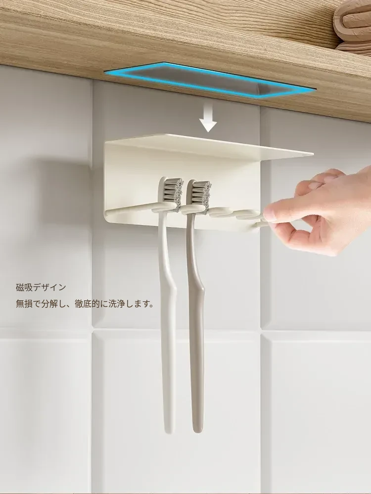 穴あけ不要!水切り収納ハンガー付きマウスカップ!壁掛け式歯ブラシカップとミラーキャビネット用マグネット歯ブラシホルダー!家族4人分の収納力!