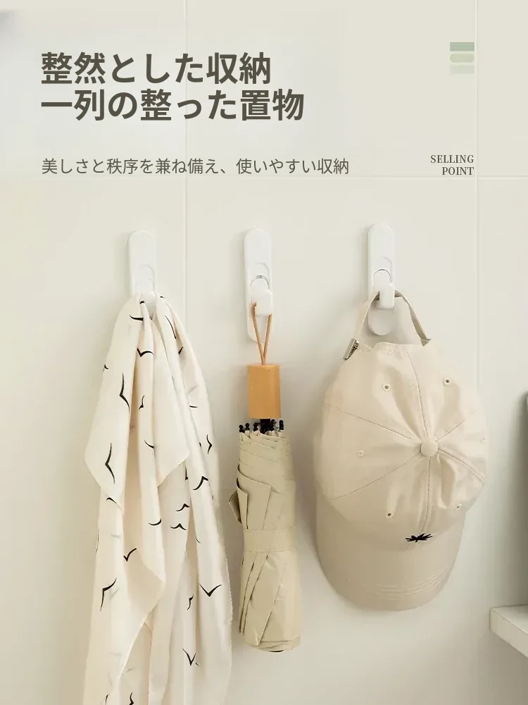 創造的フック 強力粘着剤で穴あけ不要!壁に貼れるフック、キッチンやバスルーム、ドア裏に最適!壁を傷めずにしっかり支える、便利でスタイリッシュな収納アイテム!