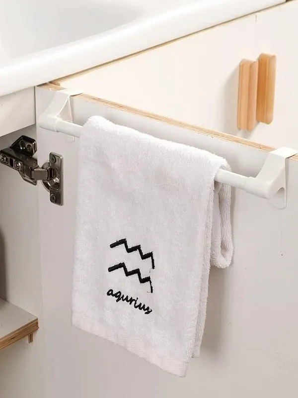 壁掛けタオルハンガー キッチン用プラスチック製タオルバー 扉に取り付けられるシングルロッド タオル収納ラック バスルームに最適な穴あけ不要の便利アイテム!