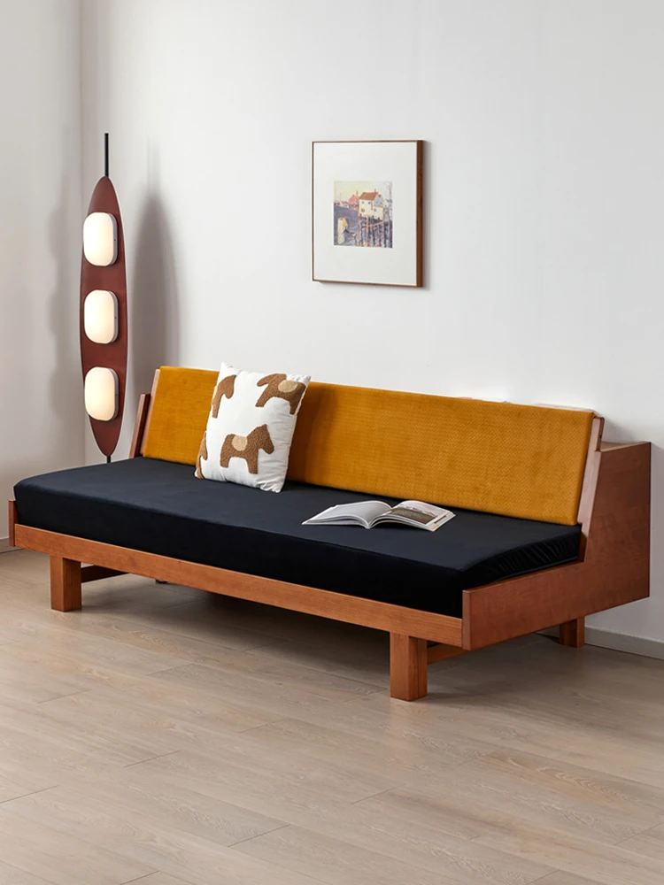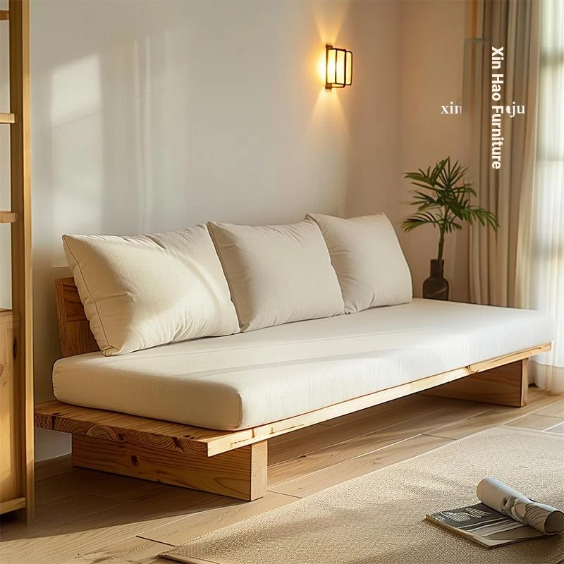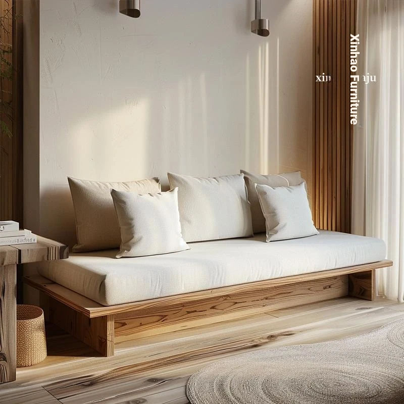 Japanese Wabi-Sabi Style Solid Wood Sofa for Living Room - Vintage Distressed Design, Removable and Washable Fabric, Perfect for Double or Triple Seating in Guesthouse or Home Decor