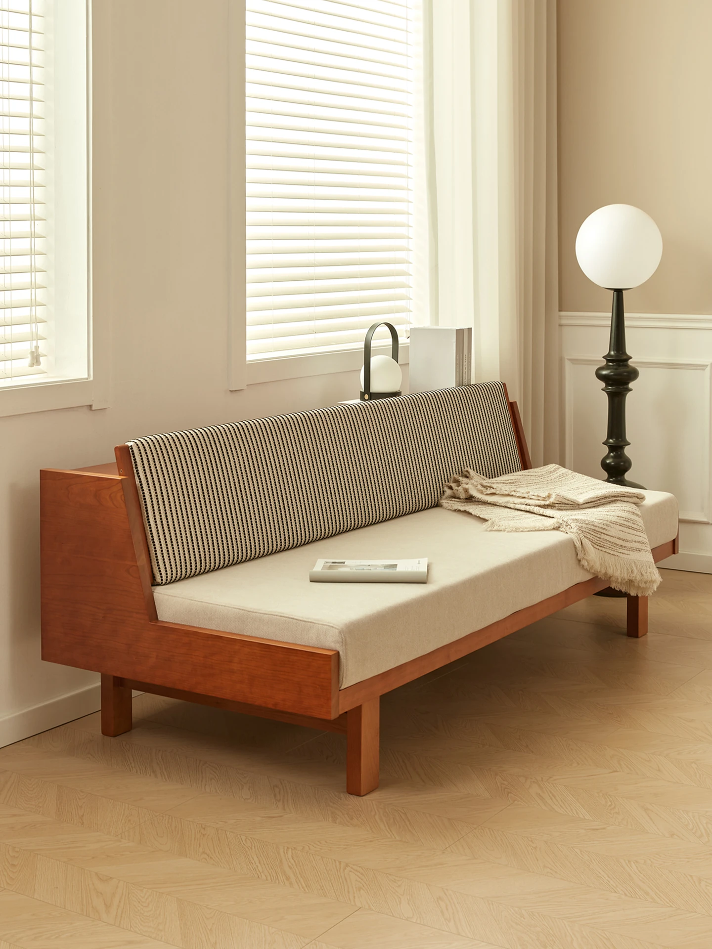 Japanese Wabi-Sabi Style Solid Wood and Fabric Sofa for Small Spaces - Removable and Washable Living Room Chairs for Relaxation, Available in Single and Double Seater Options. Perfect for Cozy Interiors!