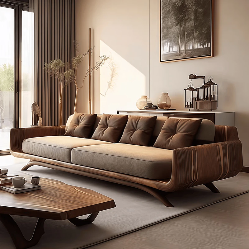2025 New Italian Minimalist Solid Wood Sofa Set - Stylish Curved Design for Luxurious Living Rooms and Villas, Perfect for Home Use