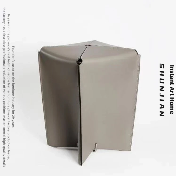 Italian Minimalist Luxury Saddle Leather Stool - Designer Genuine Leather Footrest for Home, Unique Low Stool for Shoe Changing and Vanity Use.