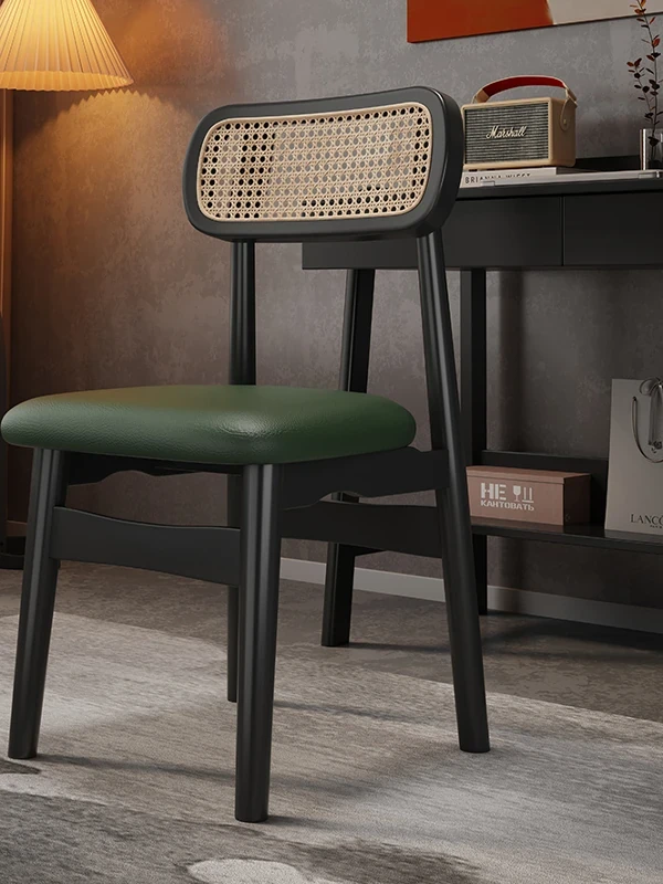 Vintage Solid Wood Dining Table and Chair Set with Rattan Backrest - French Style Retro Leisure Home Chair, Perfect for Dining or Makeup Vanity, Elegant and Affordable Luxury