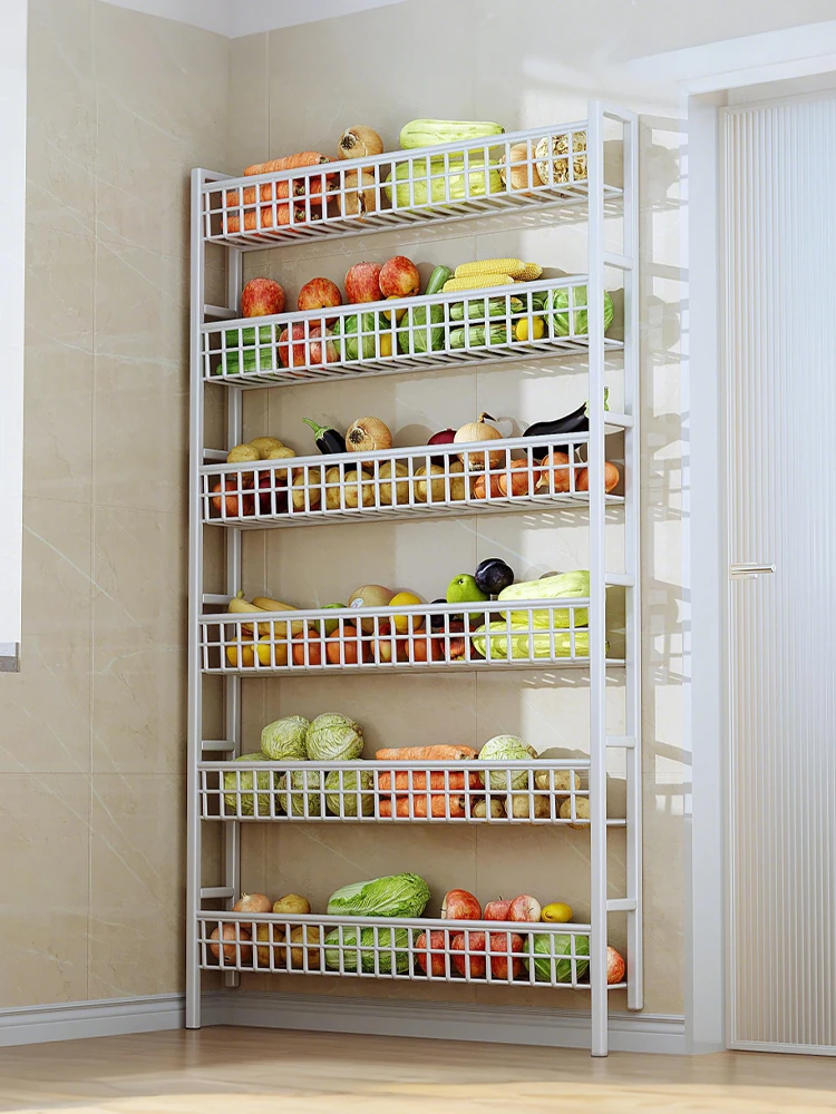 Slim Multi-Layer Metal Storage Rack - Freestanding Wall-Mounted Organizer for Kitchen & Home - Perfect for Storing Miscellaneous Items Behind Doors