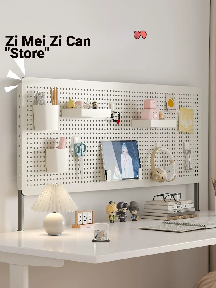 Wall-Mounted Perforated Panel Storage Shelf - Ideal for Students and Home Use, Perfect for Organizing Your Dorm Desk and Displaying Items with Durable Metal Design.