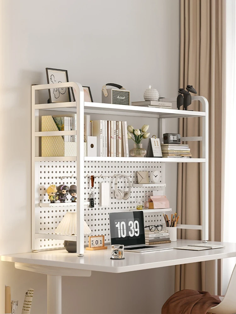 Multifunctional Desktop Organizer - Iron Art Vertical Multi-Layer Storage Rack with Pegboard for Study Desk, Office, and Dorm Room - Perfect for Decorative and Functional Use