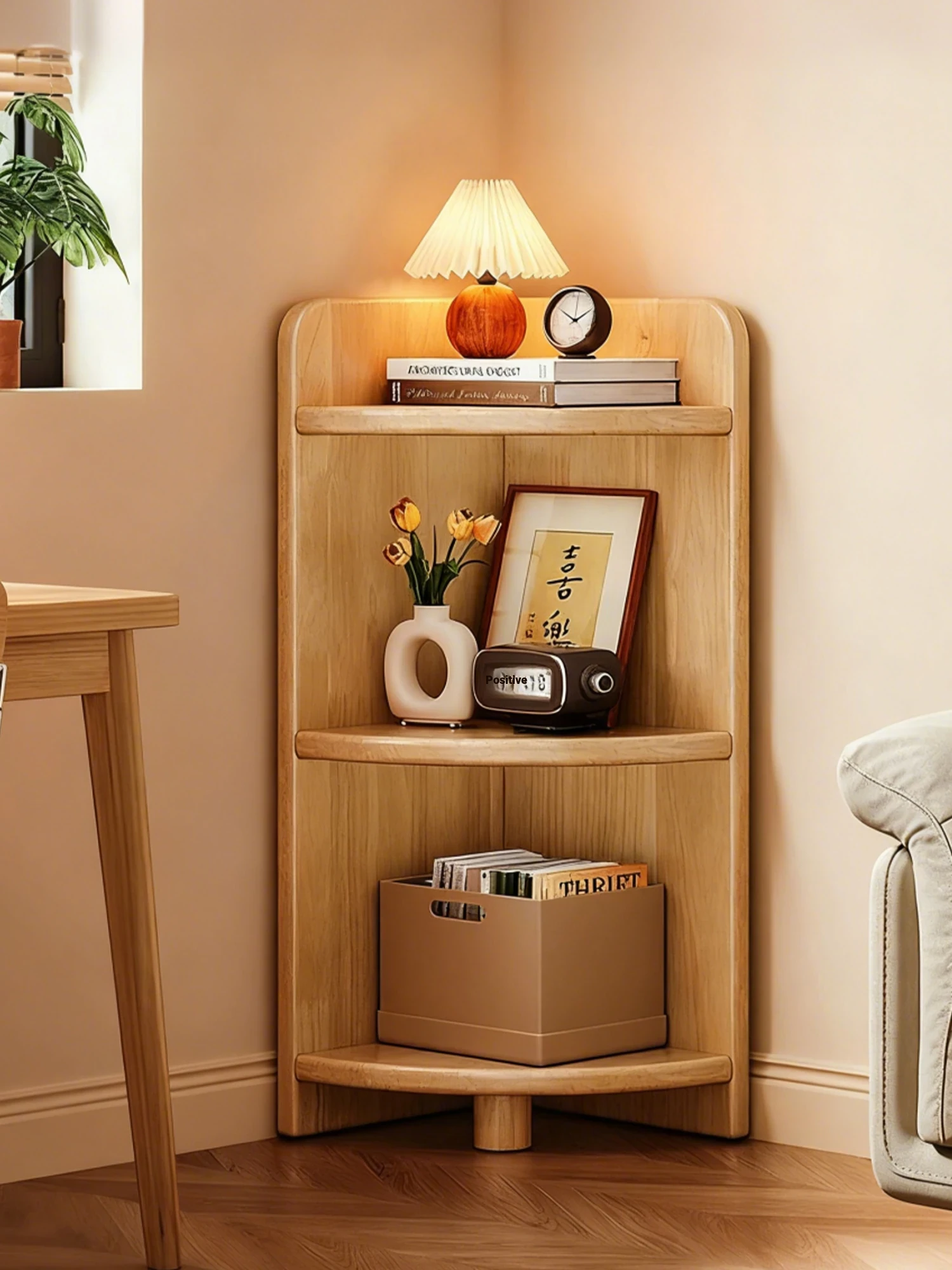 Solid Wood Corner Bookshelf - Space-Saving Floor-Standing Storage Cabinet for Home Use, Sleek Narrow Design with Wall-Mounted Simplicity - Perfect for Organizing Your Books and Decor!