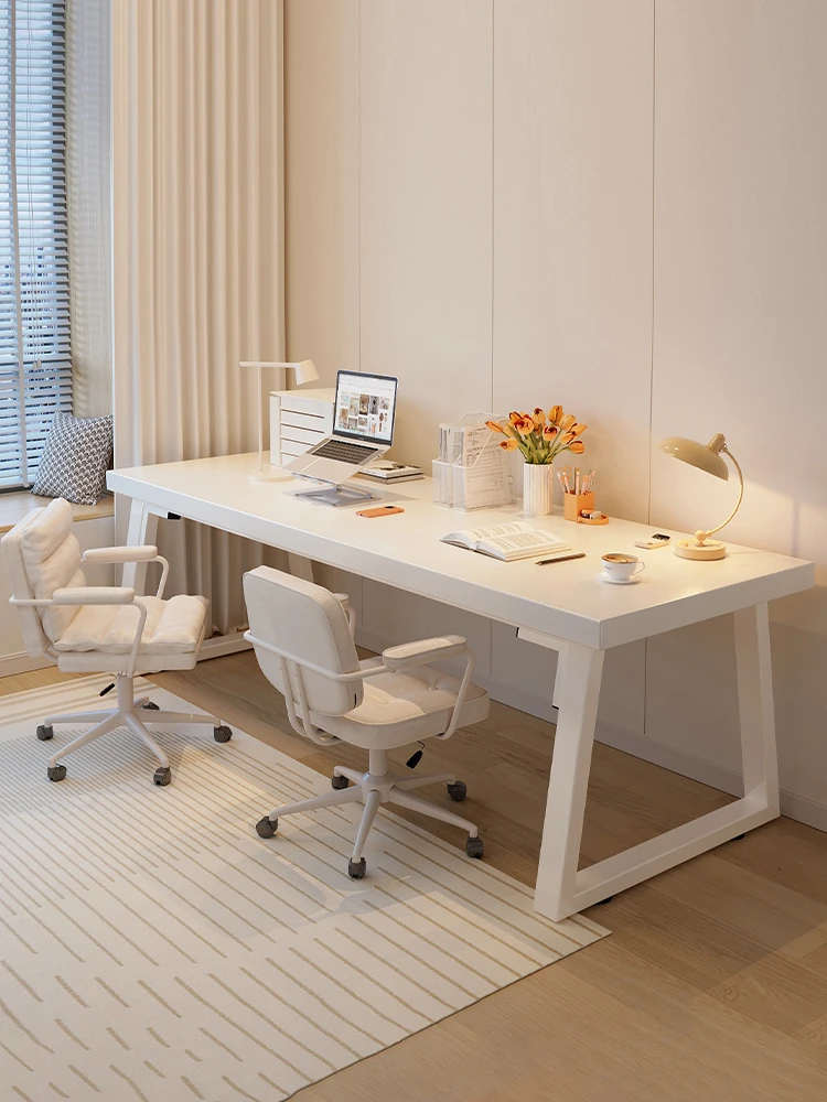 White Rectangular Gaming Desk for Home Use - Double Student Study Table, Perfect for Girls' Bedrooms and Small Spaces