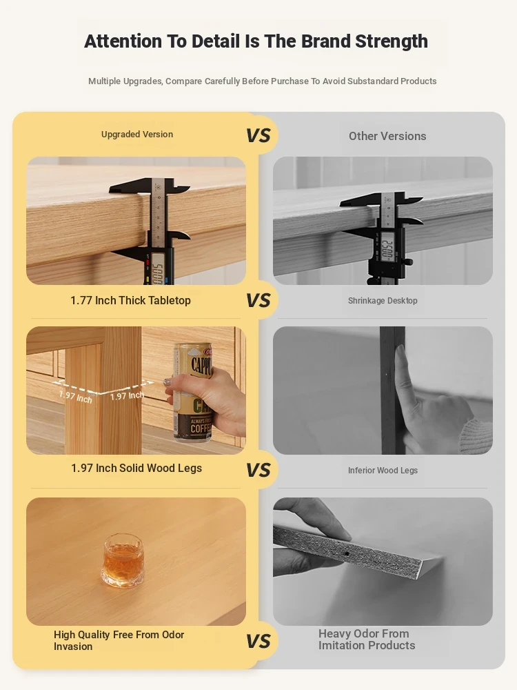 2025 New Solid Wood Study Desk - Elegant Writing Table for Adults, Home Use, Spacious Rectangular Design, Perfect for Work or Study