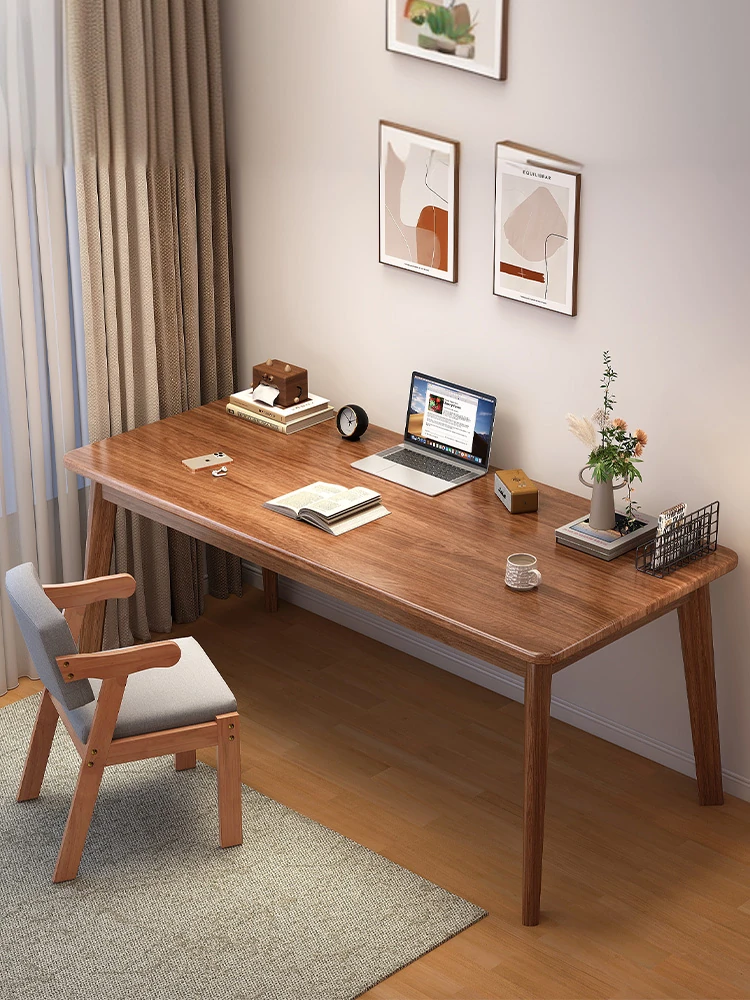 Elegant Solid Wood Home Office Desk - Minimalist Style Computer Table for Bedroom and Study - Perfect for Writing and Work, Blending Sophistication with Functionality