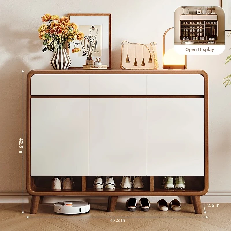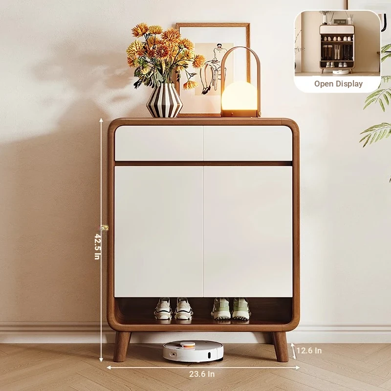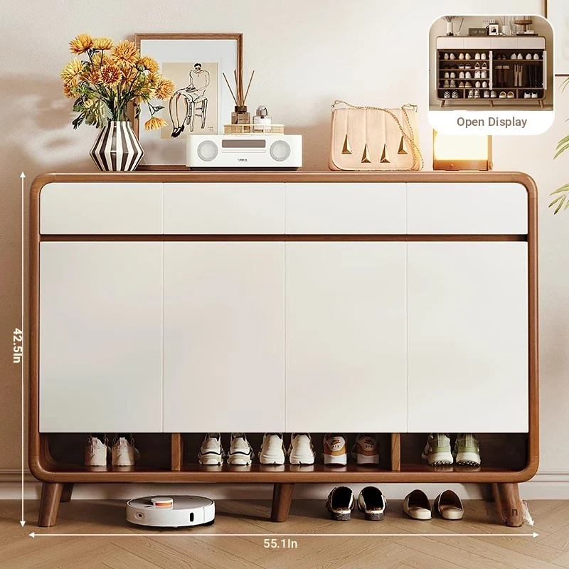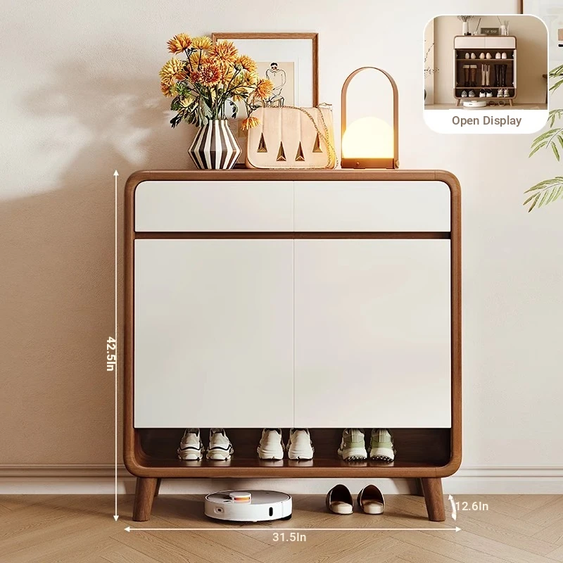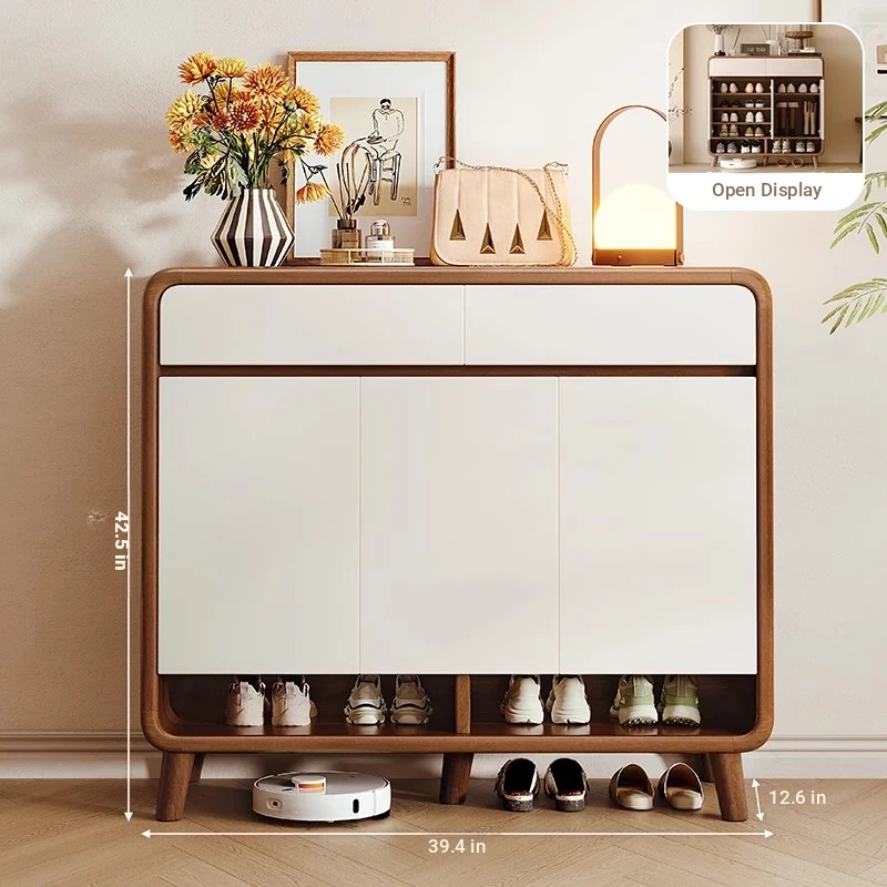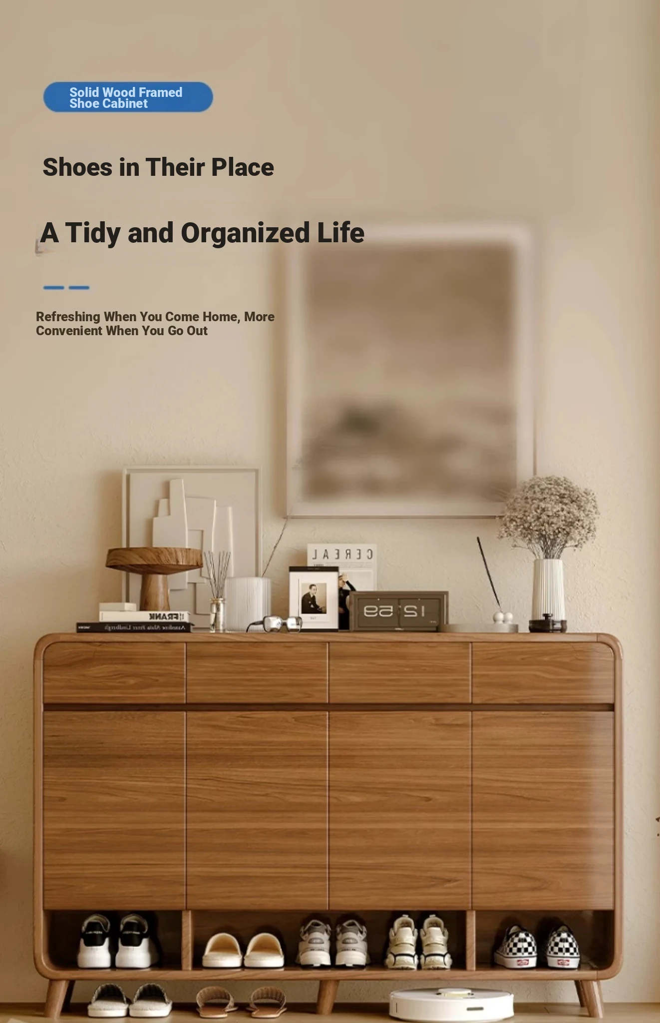 "2024 New Arrival: Multi-Layer Solid Wood Shoe Cabinet for Home Entryway - Stylish Wall-Mounted Storage Solution for Your Hallway"