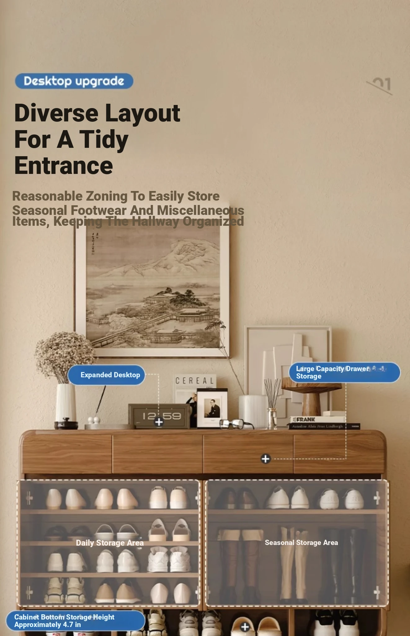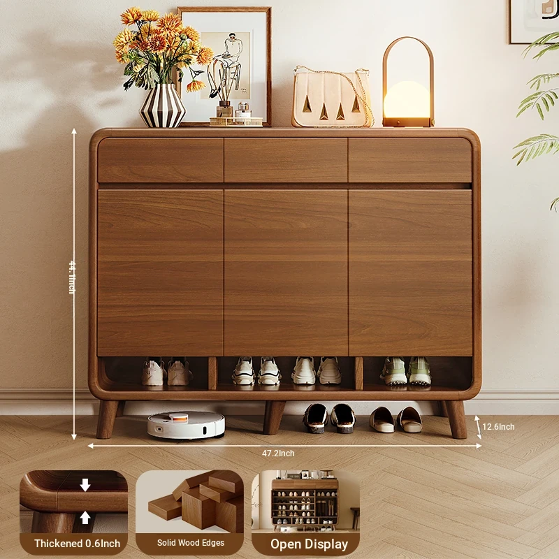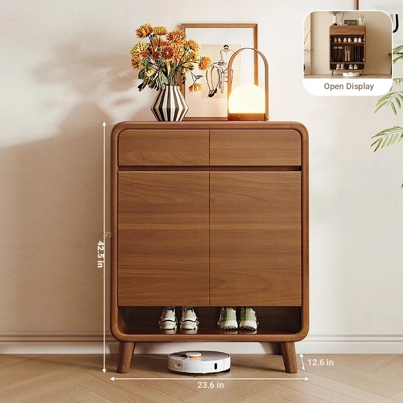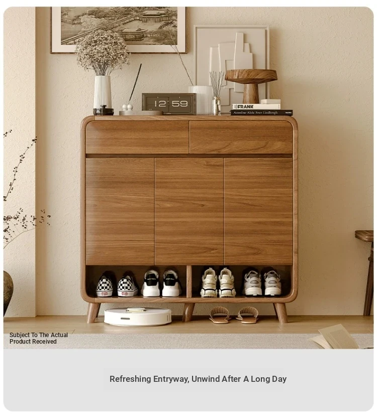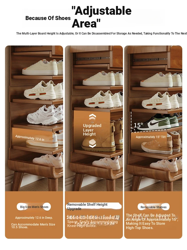 "2024 New Arrival: Multi-Layer Solid Wood Shoe Cabinet for Home Entryway - Stylish Wall-Mounted Storage Solution for Your Hallway"