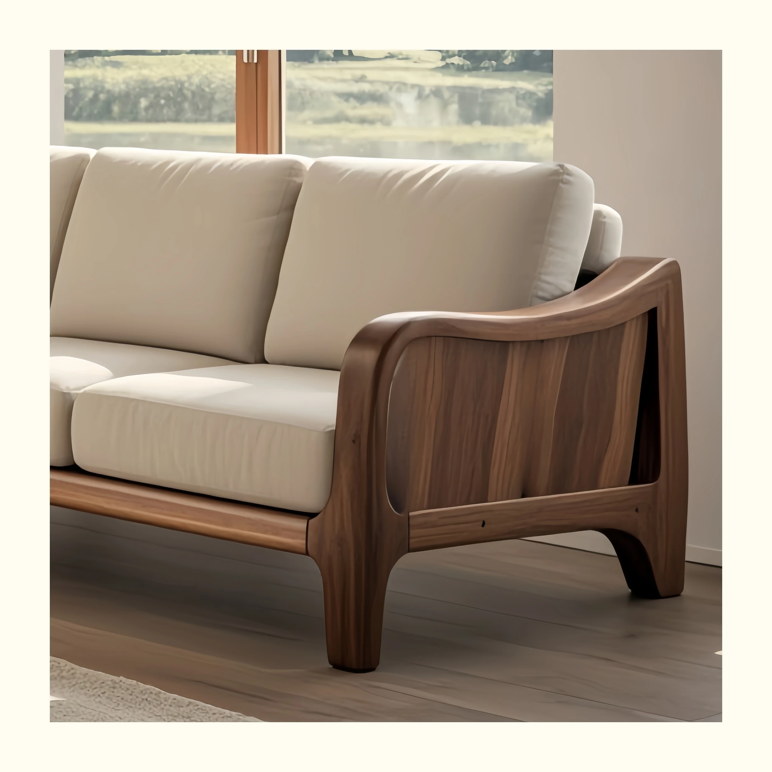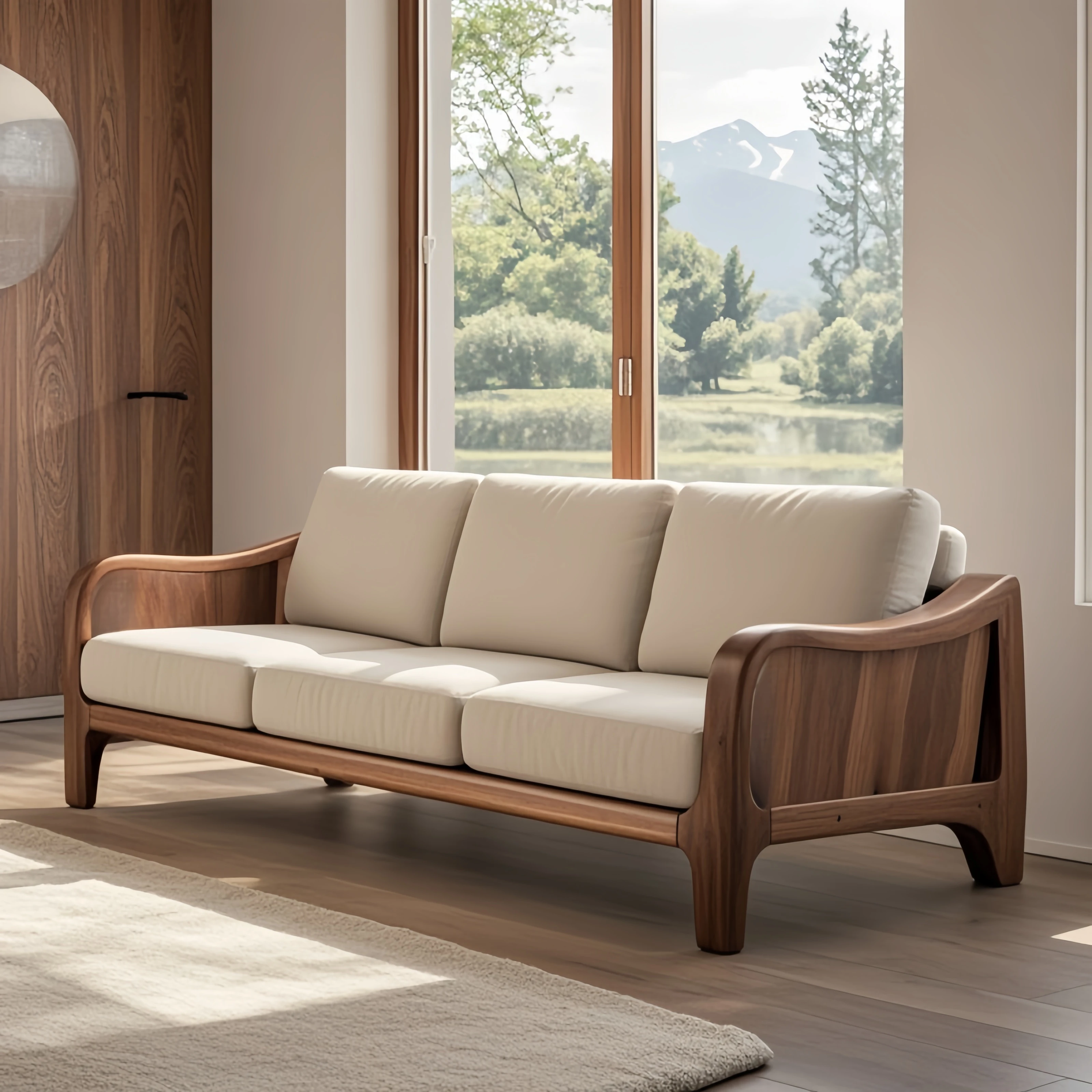 2025 Designer Solid Wood Sofa - Luxurious Minimalist Black Walnut Sofa for Living Room, Villa, and Home Use - Perfect Blend of Comfort and Style