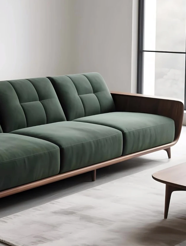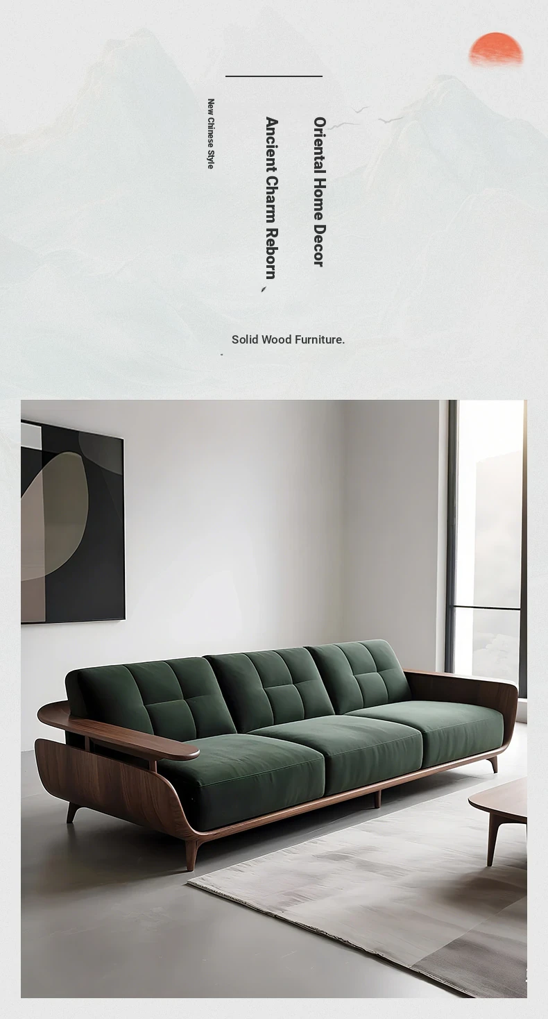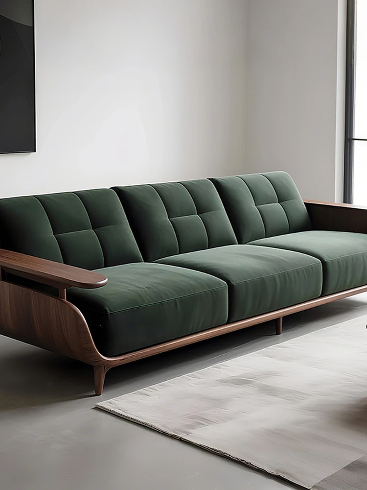 2025 New Arrival Italian Minimalist Wabi-Sabi Style North American Black Walnut Sofa - Simple and Elegant Solid Wood Straight Sofa for Your Living Room