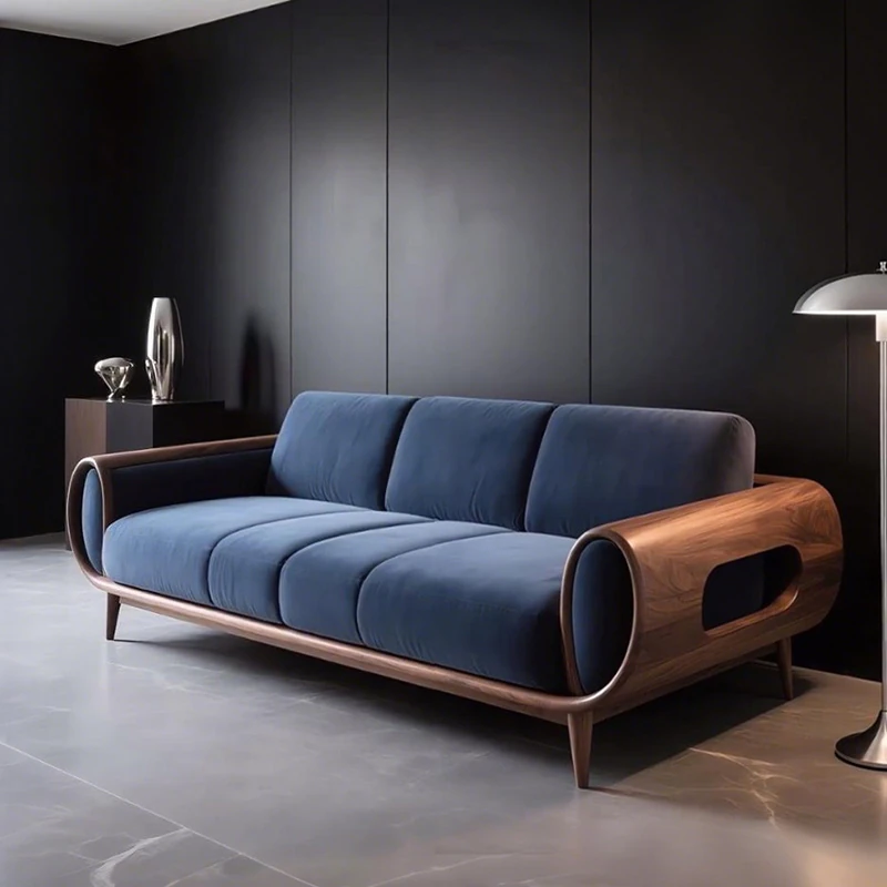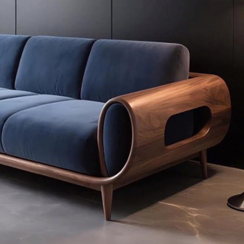 2025 New Chic Black Walnut Sofa - Modern Zen-Inspired Solid Wood Couch for Luxury Hotels and Homes, Perfect for Contemporary Living Rooms