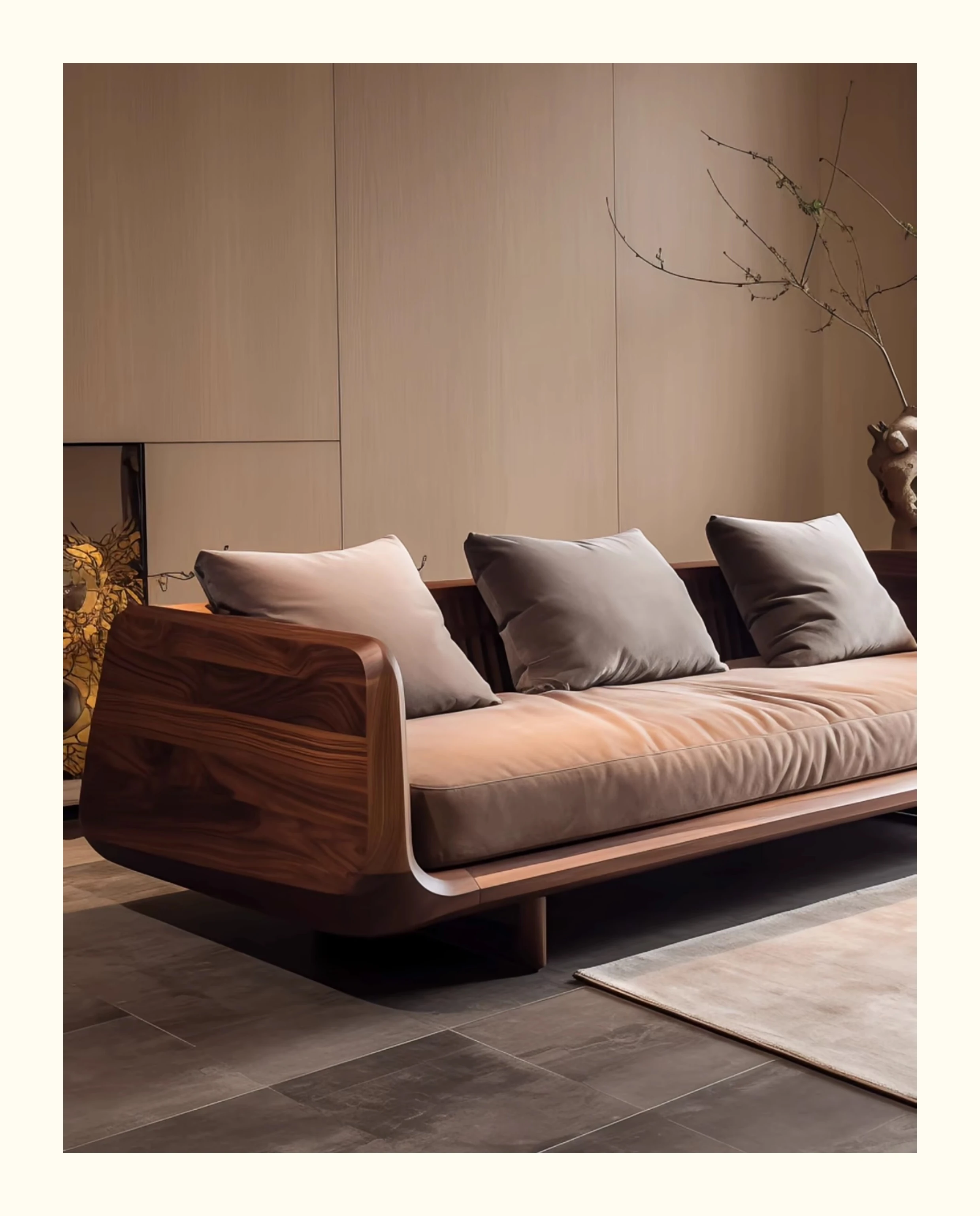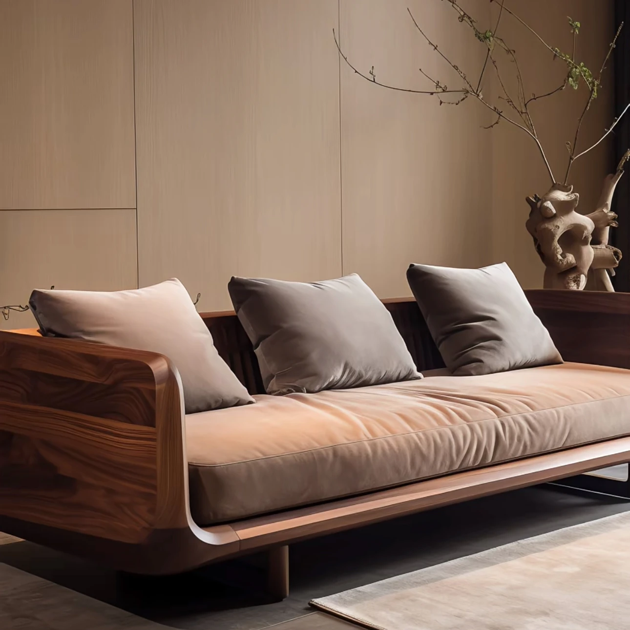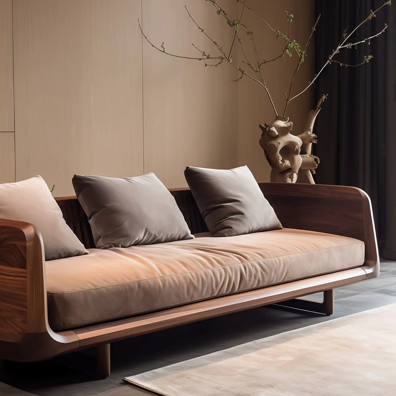 2025 New Chinese Style Solid Wood Sofa - Elegant Luxury Living Room Sofa, Straight Layout for Relaxation and Reception, Featuring a Chic Daybed Design