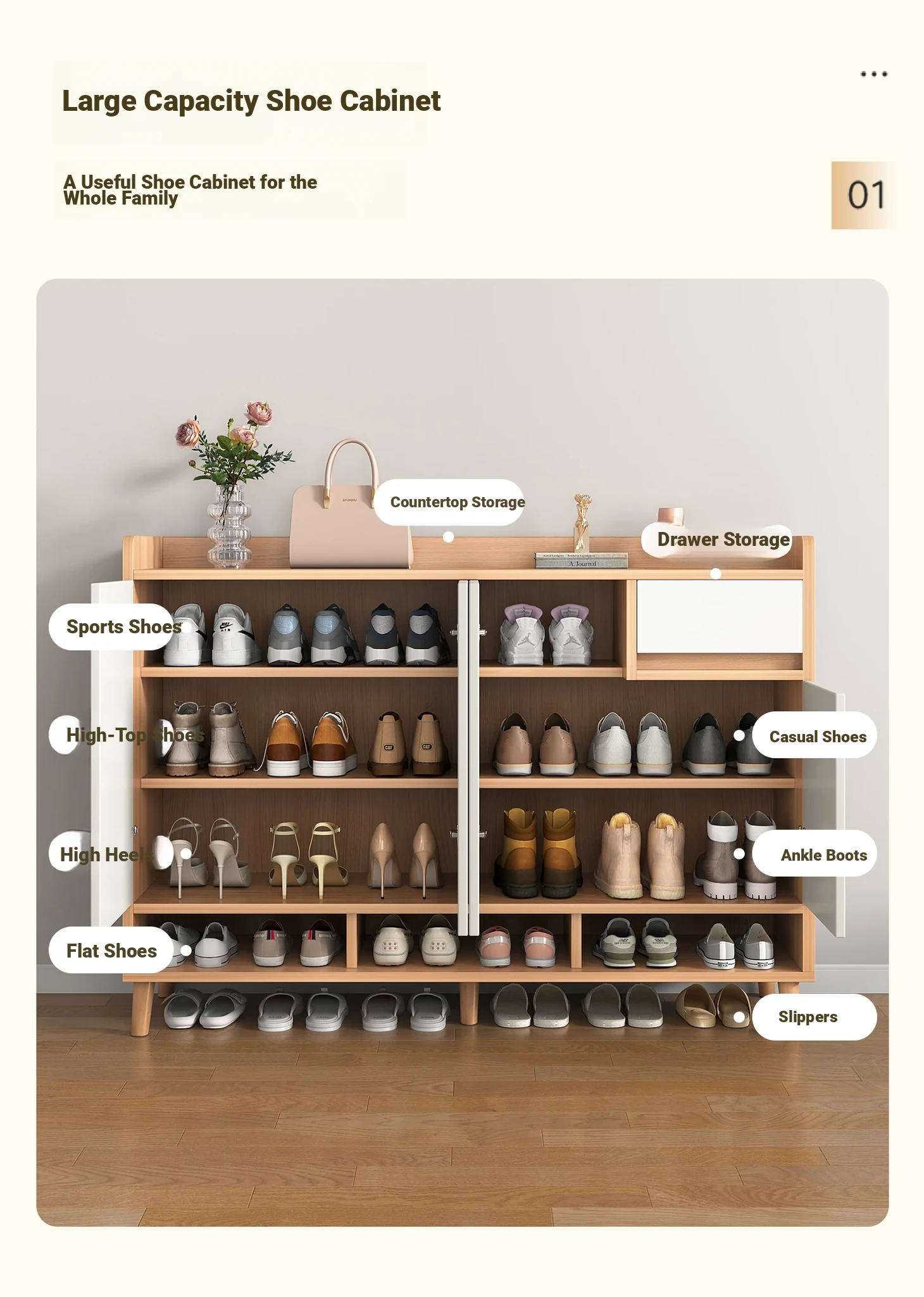 2025 New High-End Wooden Shoe Rack - Stylish Entryway Storage Cabinet for Home, Wall-Mounted Design, Perfect for Organizing Shoes at Your Doorstep