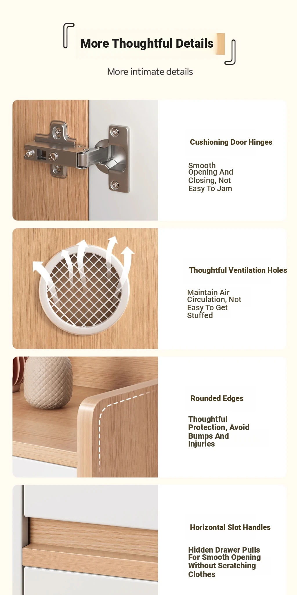 Carefully Selected High-Density Hdf Boards★Four Doors and One Drawer] Cherry Wood Color + Warm White 55.12in*12.60in*39.37in
