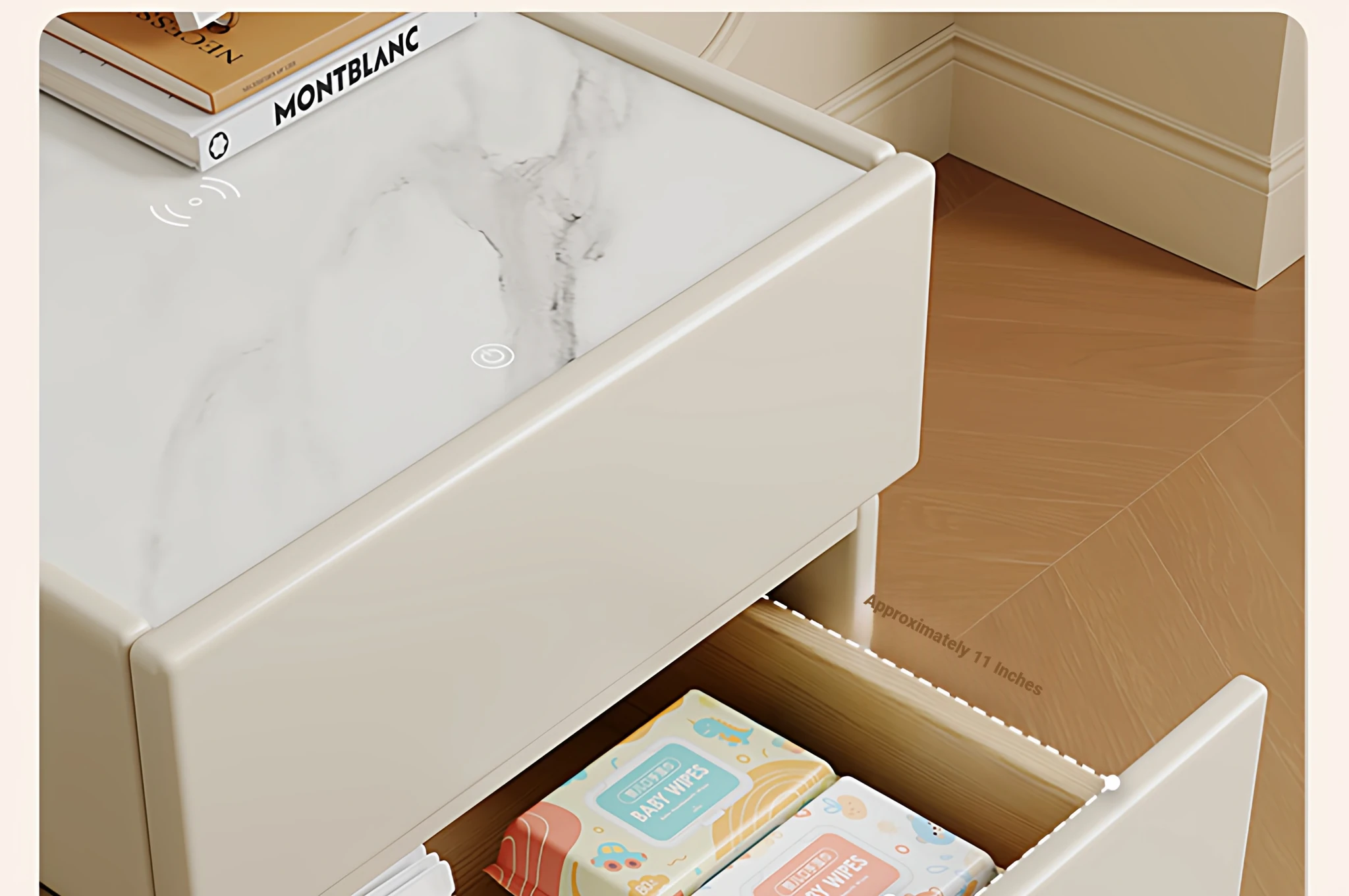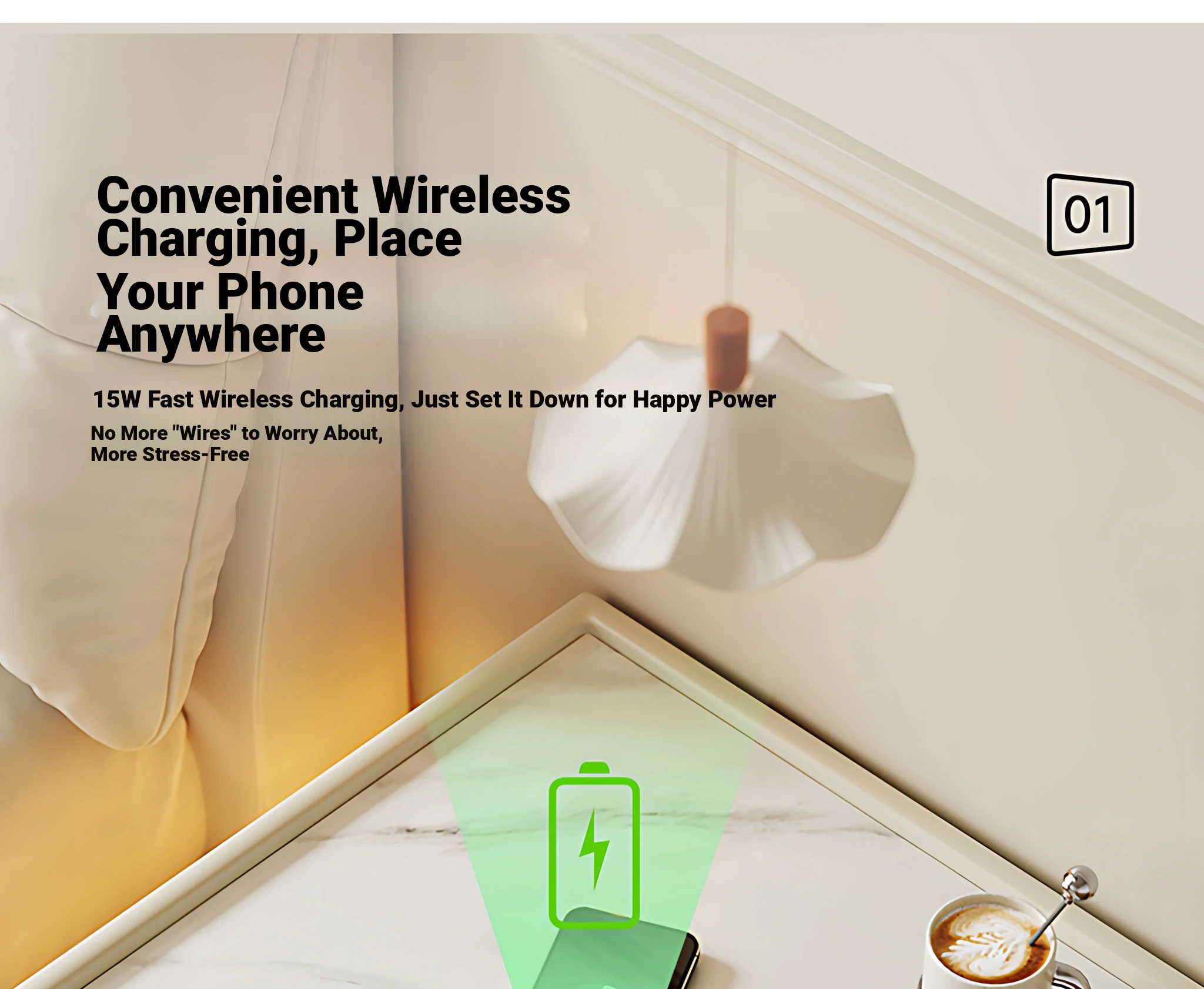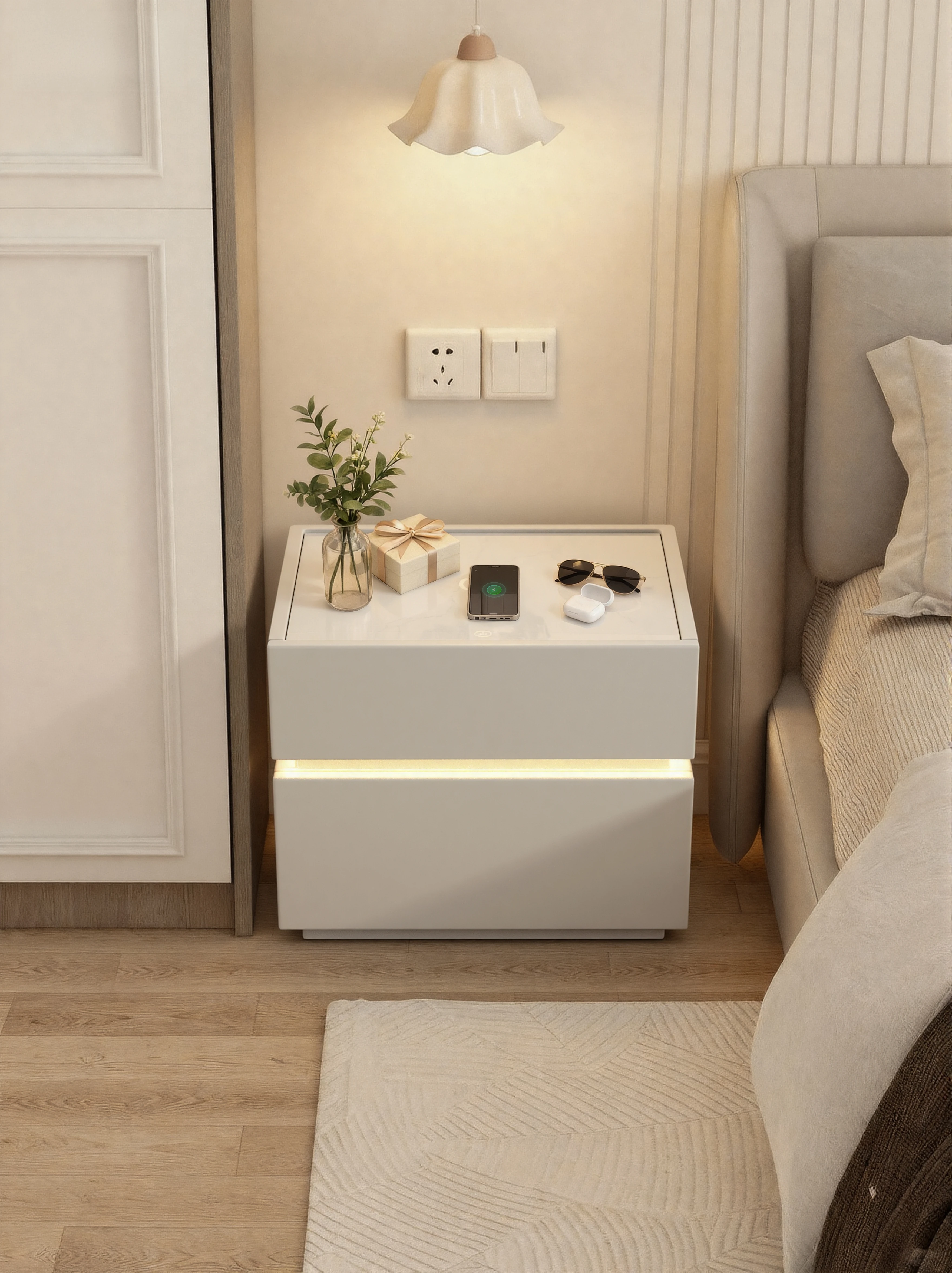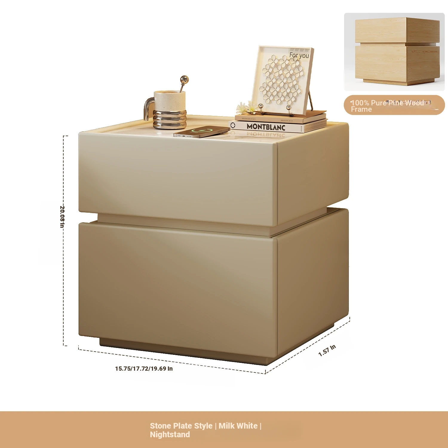 2025 New Italian Minimalist Luxury Solid Wood Nightstand - Modern Leather Smart Bedside Table for a Chic Bedroom Upgrade